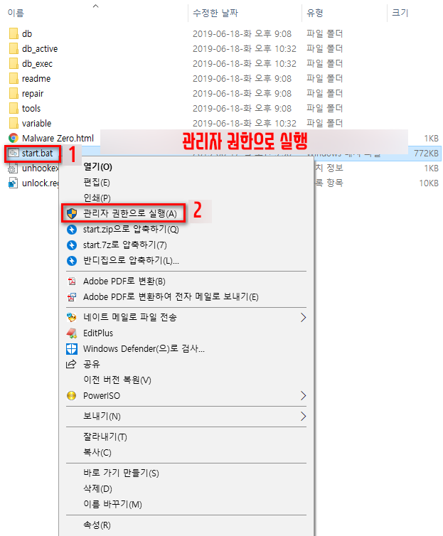 마우스 오른쪽 클릭하여 "관리자 권한으로 실행" 클릭하시면 됩니다.