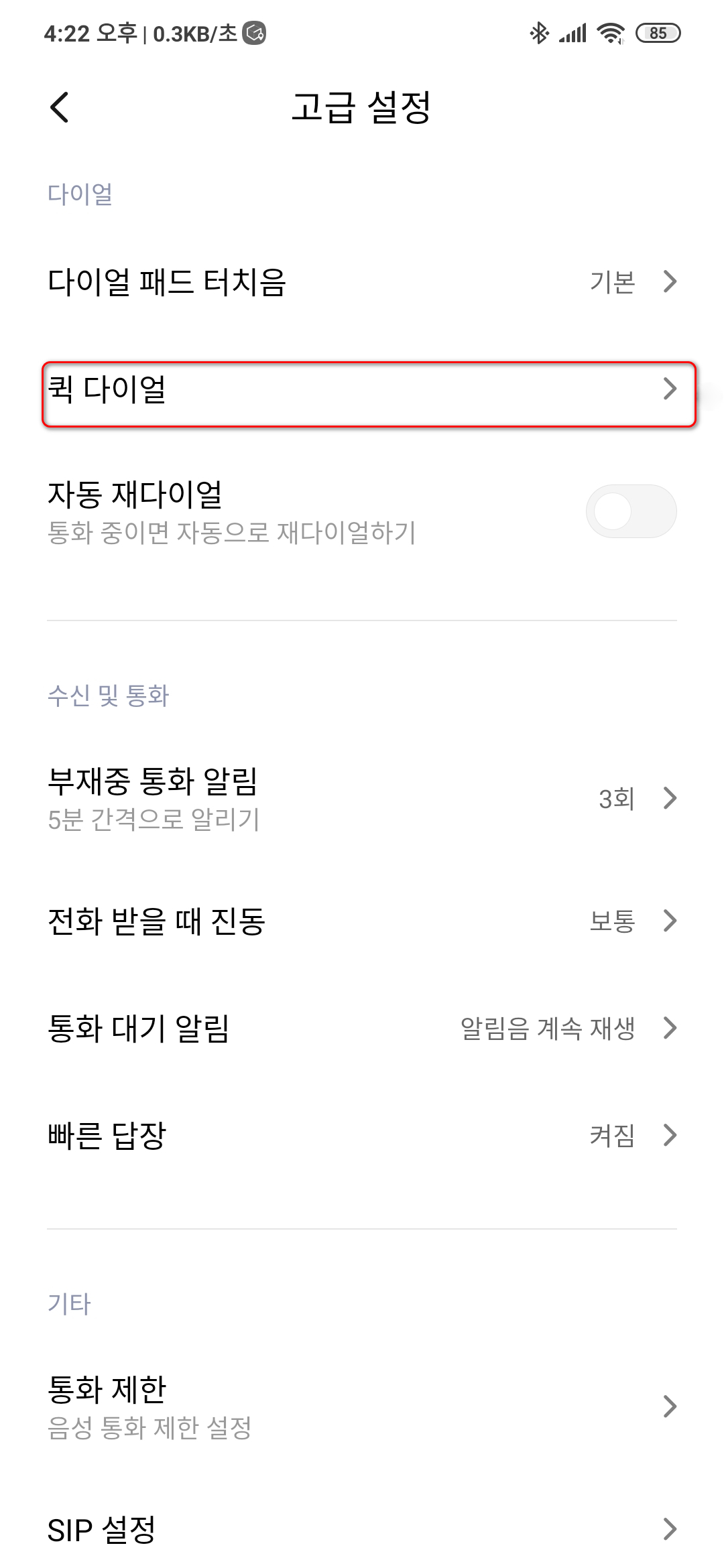 홍미 노트 퀵 다이얼 설정