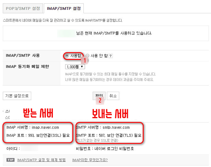 네이버 POP3/IMAP/SMTP 설정법