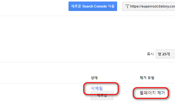 구글 서치 콘솔 - 색인 : 삭제