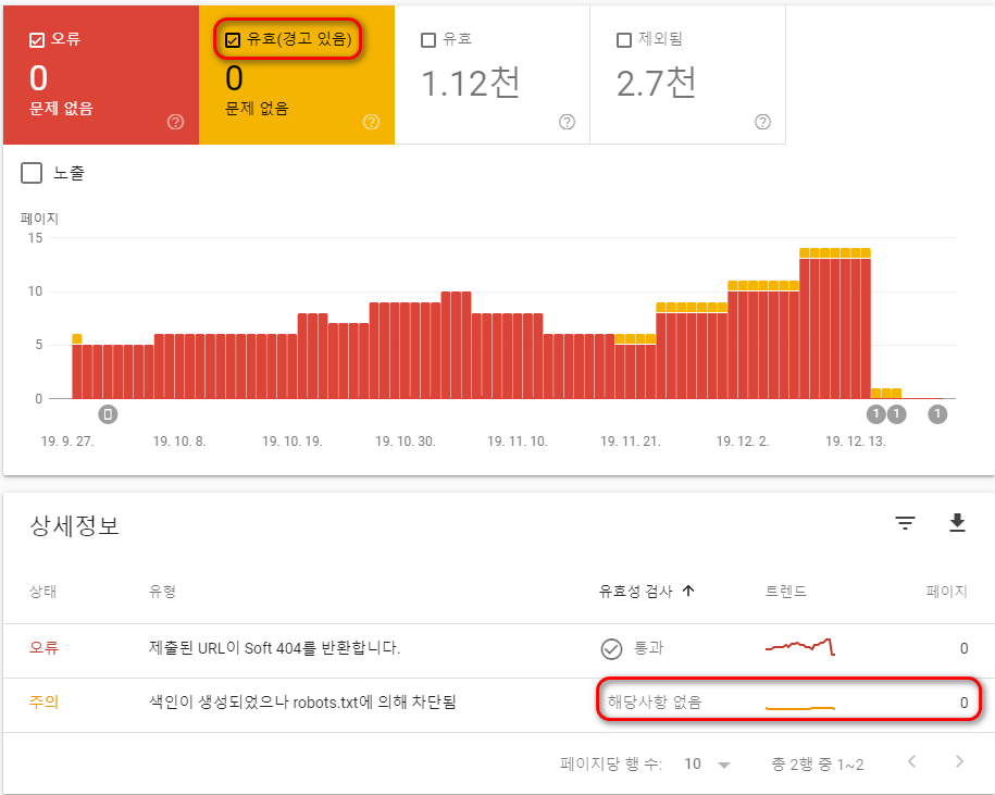 Google search console 유효(경고 있음) 해결법