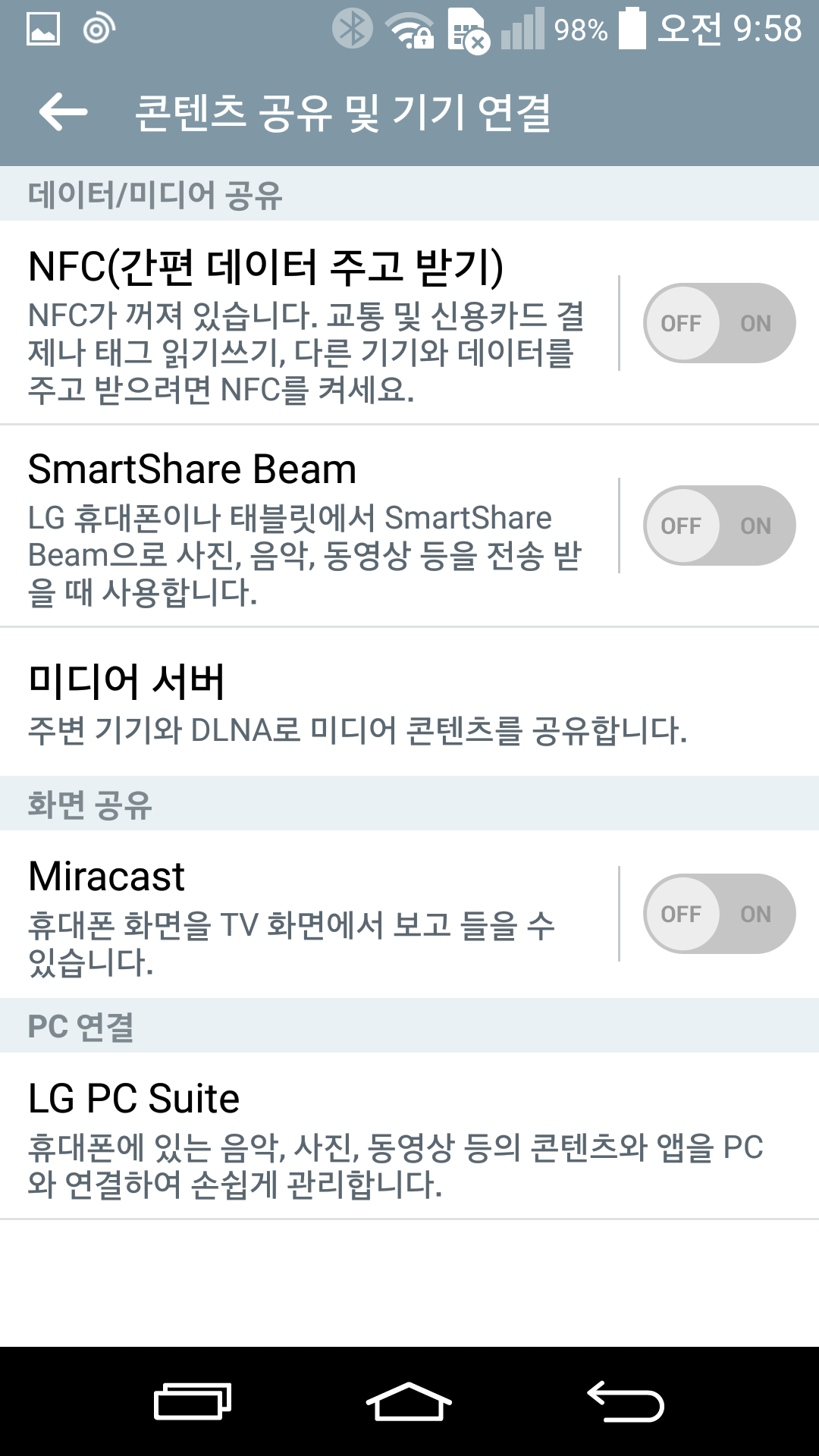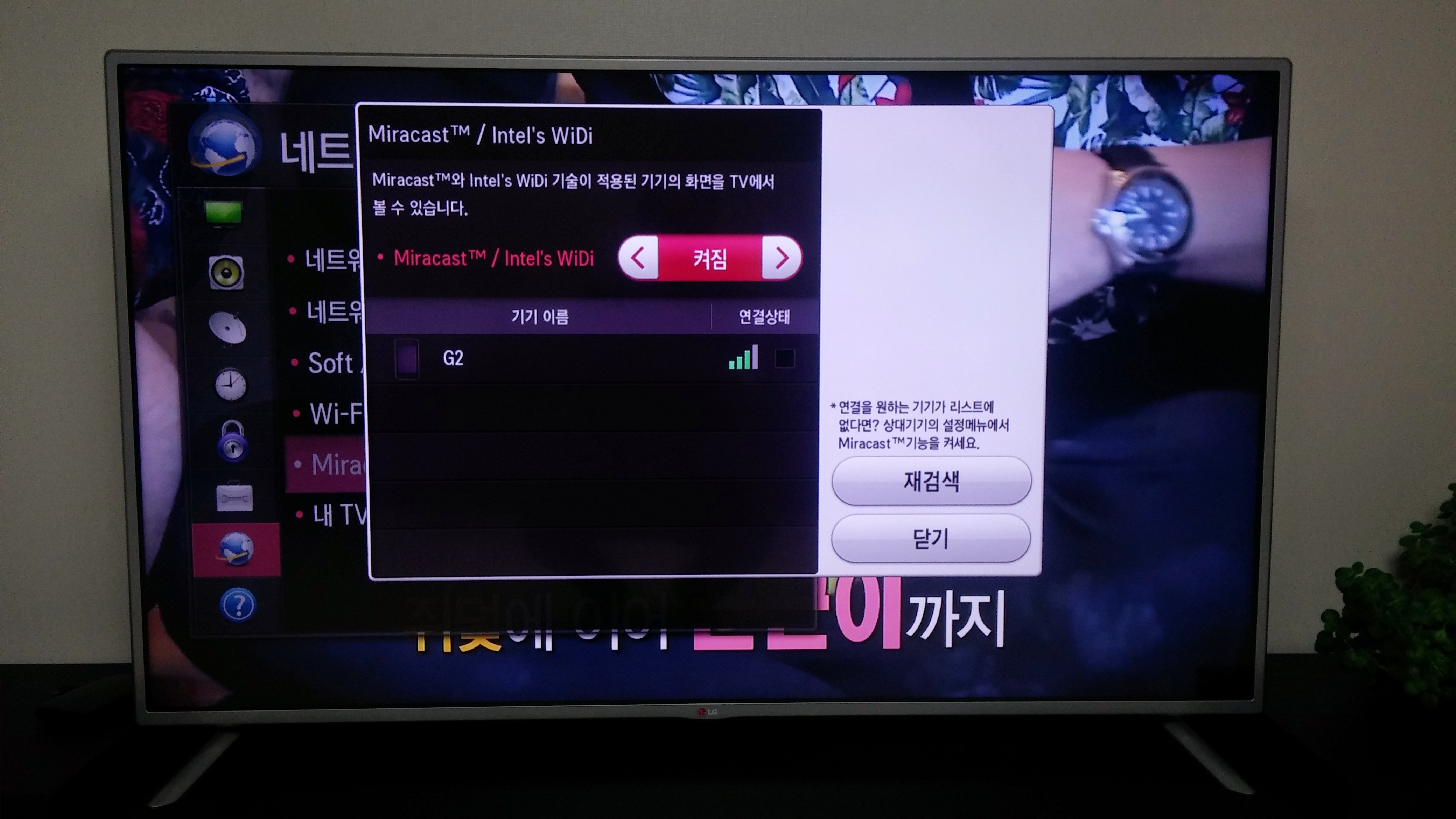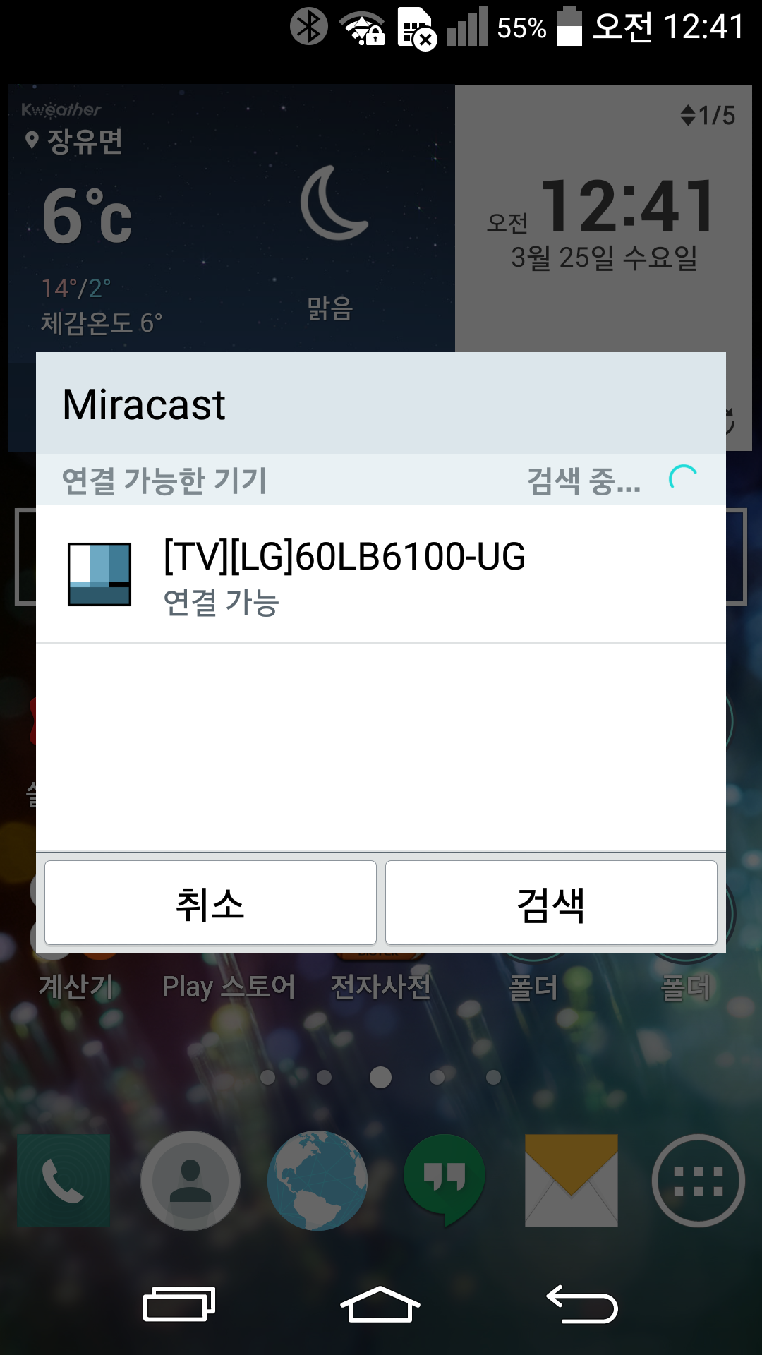 2) G2 휴대폰에서 Miracast를 켜줍니다.