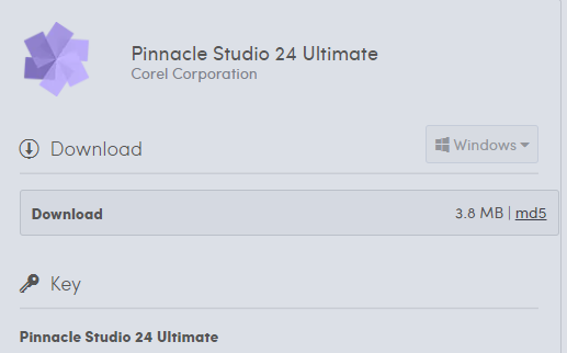 payment가 완료되면 Library에 Pinnacle Studio 24 Ultimate Download 링크와 product key가 활성화됩니다. 프로그램의 용량은 3.8MB 지만 해당 프로그램을 실행하면 자동으로 바탕화면에 Pinnacle studio 폴더가 생기며 설치에 필요한 파일이 다운로드 됩니다. 설치 프로그램과 바탕화면에 다운로드 받아진 폴더 역시 잘 백업해두는 것이 좋습니다. 프로그램 설치 시에도 바탕화면에 다운로드 된 폴더를 백업해두라고 적혀있더군요.