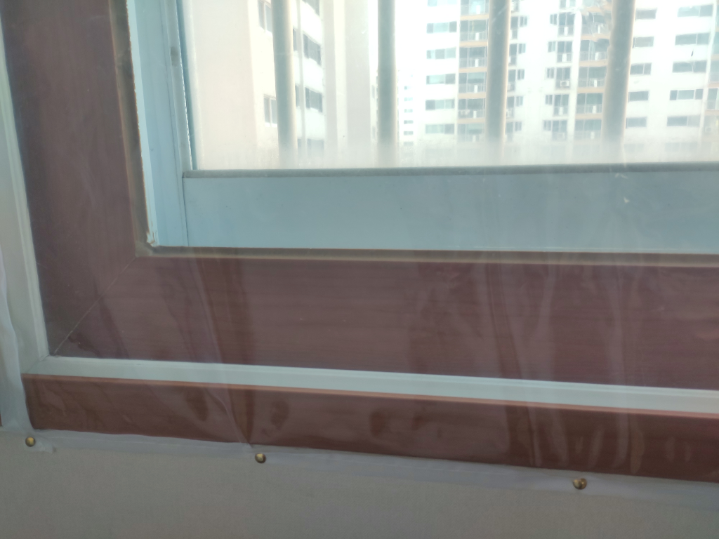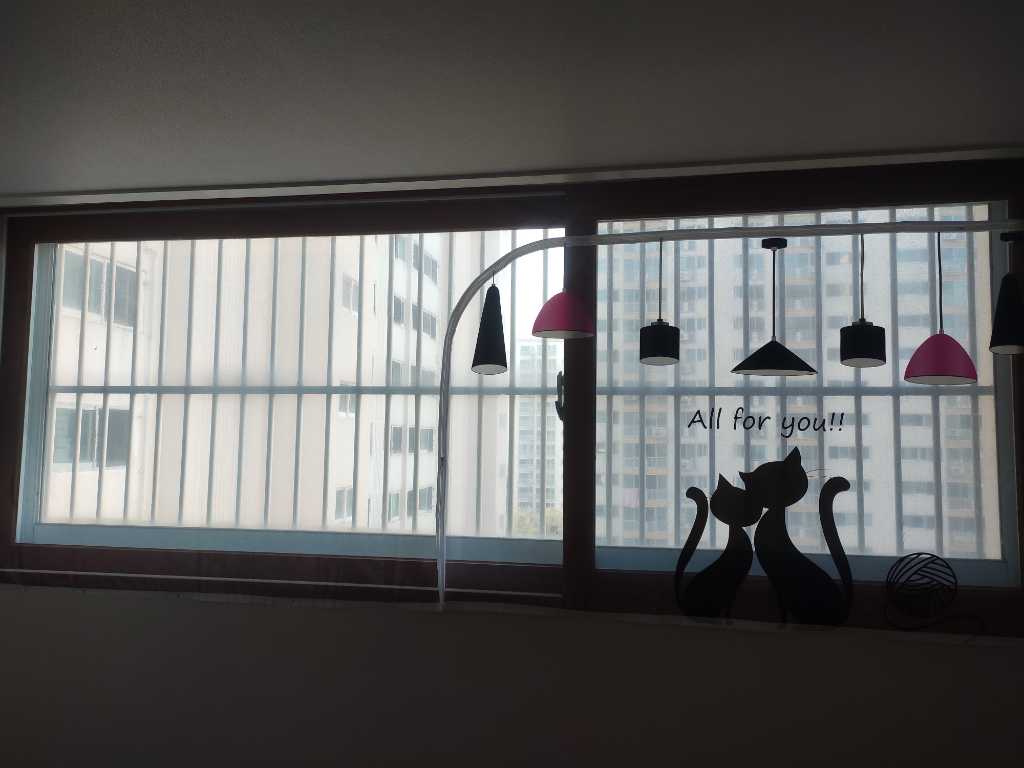 창틀 상부는 커튼 설치를 위한 공간이 있다 보니, 피스로 박아둬도 멀리서는 잘 안 보입니다. 커튼까지 설치해 버리면 더욱 감쪽같겠지요. 방품비닐 + 암막 커튼 콤보로 사용하면 보온효과가 더 좋아질 것 같은데. 뇌피셜 입니다. 이미 암막 커튼과 방풍비닐 조합으로 사용하시는 방문자분 있으시면 피드백 좀 남겨주세요.