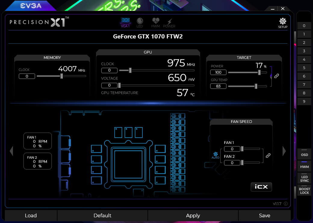GTX 1070 FTW2, 2560 X 1440, 165Hz로 설정 상태에서 IDLE 작동 중인 그래픽 카드의 온도입니다. 56~59도 정도로 FHD 모니터 사용할 때 보다 약 7도 정도 올라간 것 같습니다. 양호하네요.