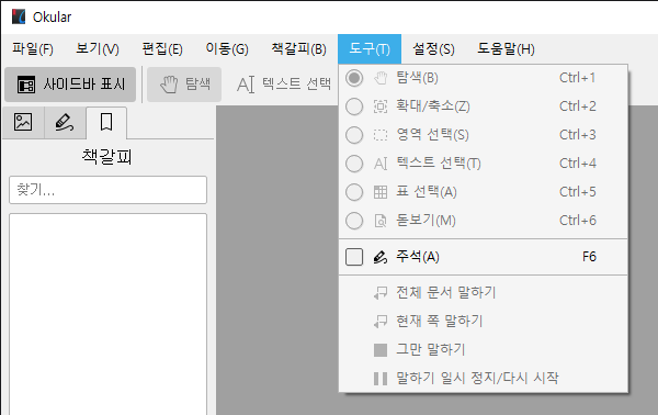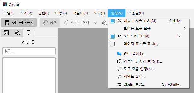 Okular / 만능 뷰어 / PDF, ps 문서, 전자책 Epub 뷰어