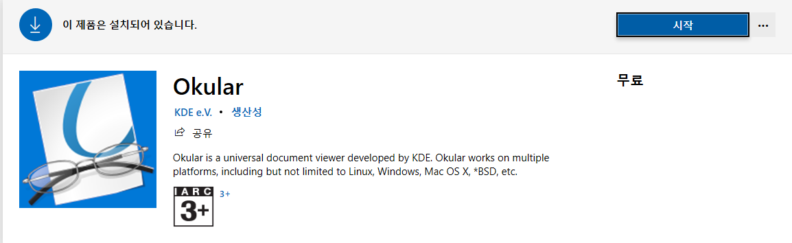 Microsoft Store에서 "Okular" 검색해서 설치하시면 됩니다. 문서 확인에 필요한 기본적인 기능 및 주석을 입력할 수 있는 기능 또한 제공하고 있습니다.
