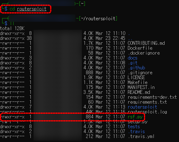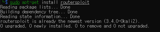 git clone으로 다운로드한 경우 별도의 업데이트가 필요 없지만, 나중에 업데이트가 필요한 경우 routersploit이 설치된 폴더에서 git pull 명령어를 통해서 update 시킬 수 있습니다.