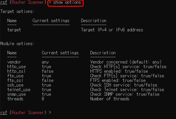 다시 show options 명령어를 입력한 후 제대로 반영되었는지 확인합니다.