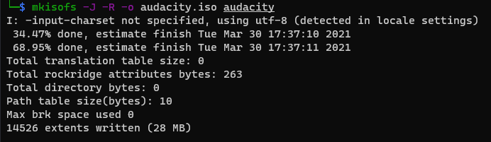위 명령어 한 줄로 iso image가 만들어졌습니다.