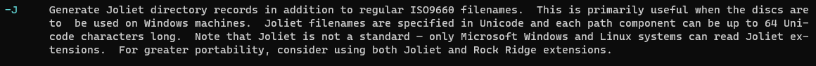사용하기 전에 man mkisofs 명령어로 사용법을 확인하시고 사용하시면 됩니다. 그중에 자주 사용되는 options에 대해서 설명드리도록 하겠습니다.