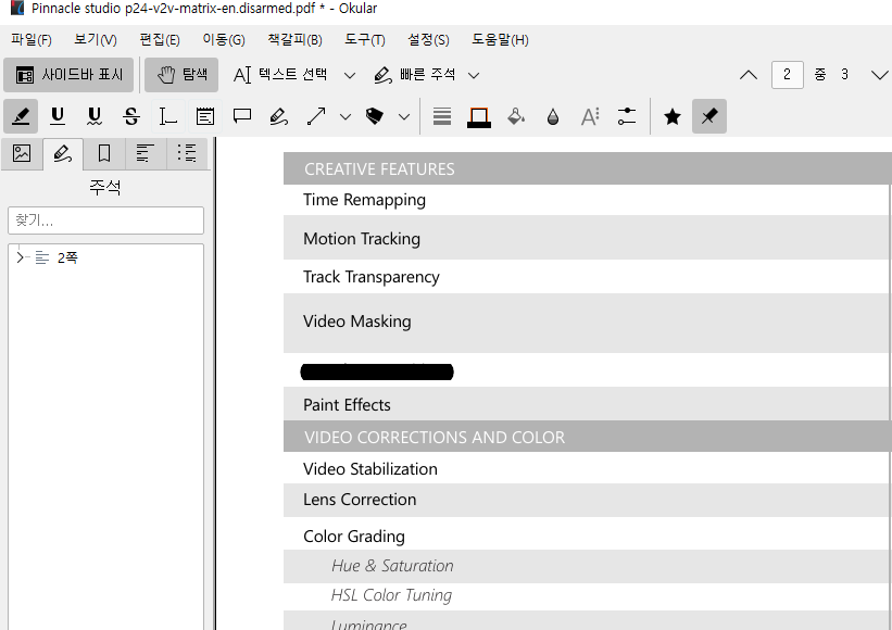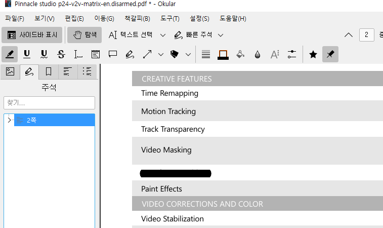 검정색 "하이라이트" 기능을 사용해서 민감한 부분을 가린 경우, 사진 좌측의 "주석" 부분에 해당 블랙 마킹이 표시가 됩니다.