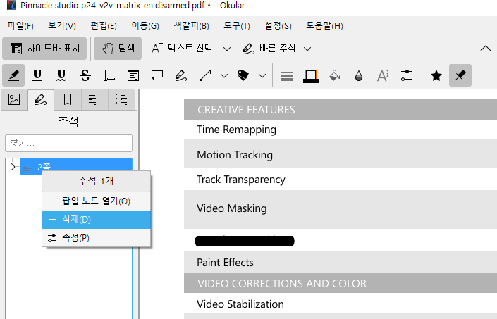 또한 이 상태에서 그대로 "저장" 또는 "다른 이름으로 저장"을 이용해서 PDF를 저장하게 되면, 공유된 PDF 문서에서 해당 주석을 삭제하게 되면 가려졌던 민감한 부분이 다시 노출되게 됩니다.