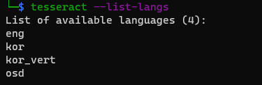 명령어: tesseract --list-langs