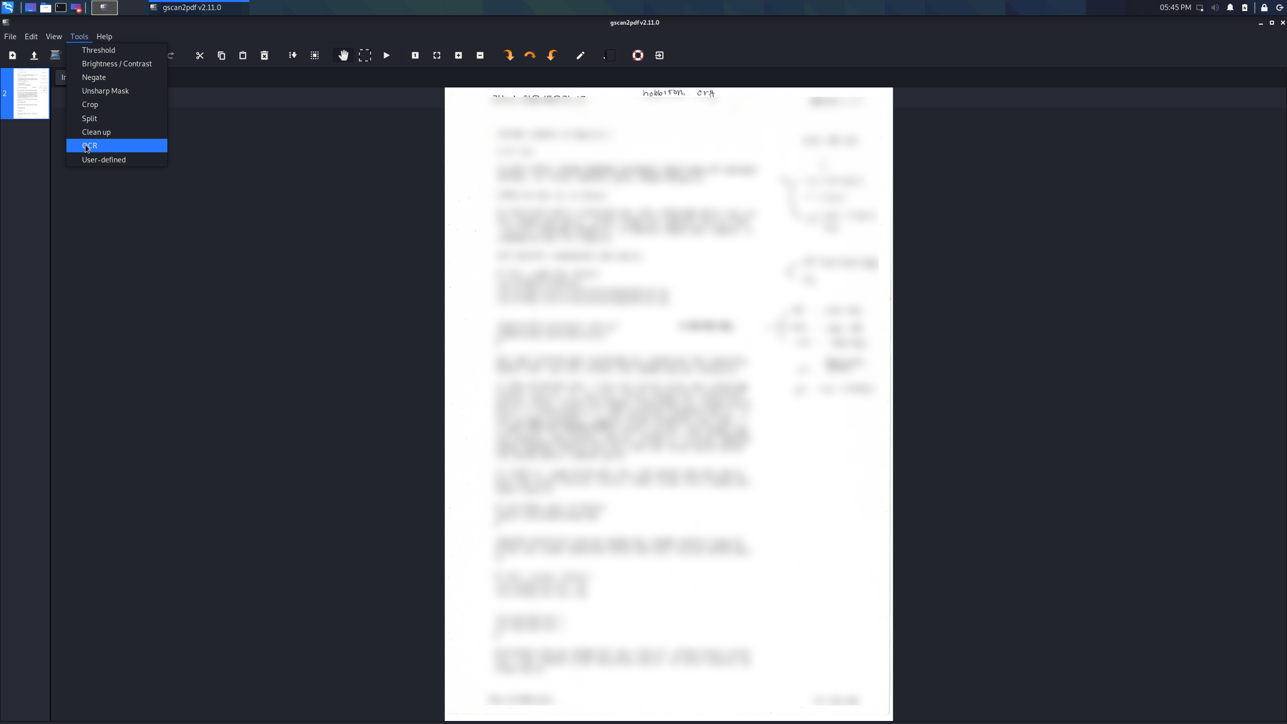 gscan2pdf (GUI) - OCR