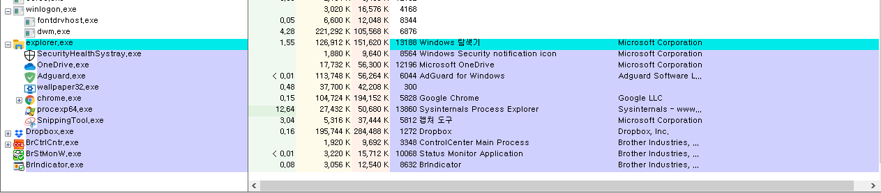 process explorer라는 프로그램을 통해서 점검하는 것도 좋습니다.