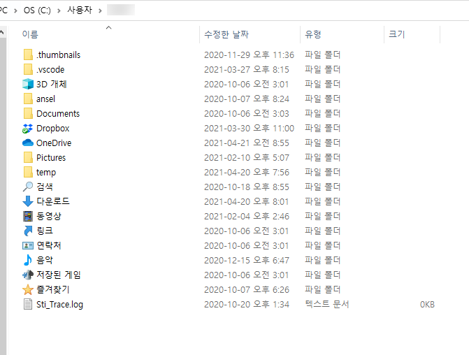 그 다음으로 "사용자 id"에 해당하는 폴더 내부를 점검해보세요.