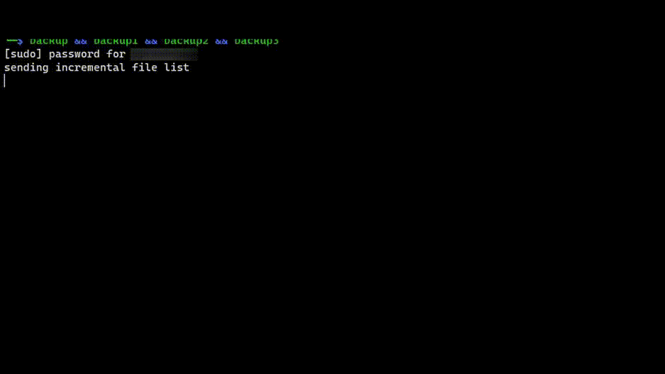 alias로 backup, backup1, backup2, backup3과 같이 alias로 명령어를 등록시켰기 때문에 backup && backup1 && backup2 && backup3 과같이 명령어 1줄로 4개 폴더의 백업 및 동기화를 실행할 수 있습니다.