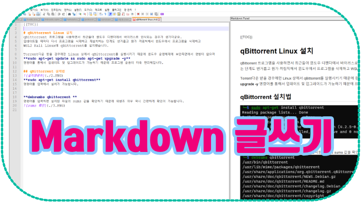 Markdown 작성방법에 대해서 익숙해지시면 별도의 워드 프로세서 프로그램 없이 완성도 높은 문서를 생성할 수 있습니다.