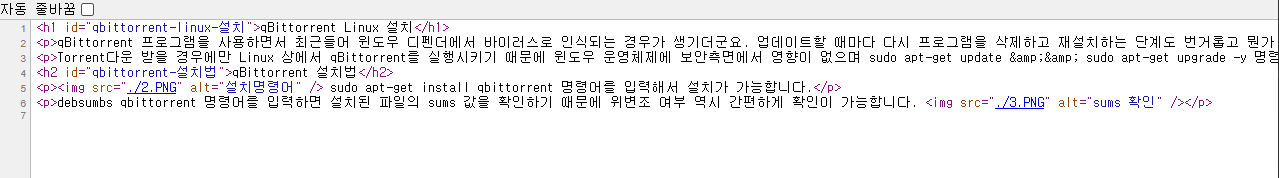 소스코드를 확인해보면 불필요한 tag는 없이 딱 필요한 tag 들만 들어있어서 편집도 편리합니다.