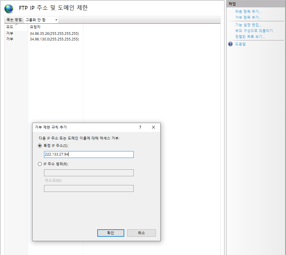 NAS 관리자 PAGE 또는 FTP 서버에서 해당 IP를 Deny IP List에 추가해줍니다.