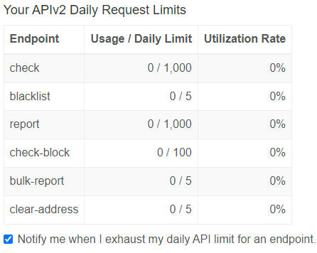 AbuseIPDB의 API Key 관련 Limits인데, Free Account인데도 Daily Limit이 1,000건(check)이나 됩니다.