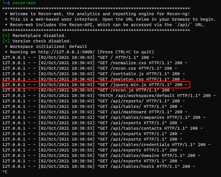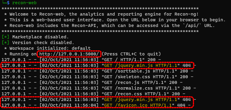 Recon-web error ("GET / jquery.min.js HTTP/1.1" 404)