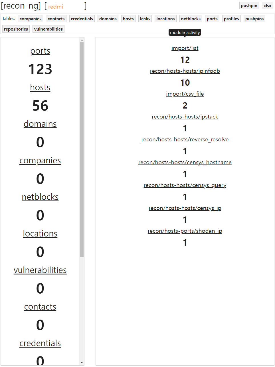 CLI에서 recon-ng 명령어로 보통 사용하는데요, recon-web 명령어를 사용하면 웹 브라우저에서 보다 쉽게 결과를 확인할 수 있습니다. GUI 환경이 더 편하신 분들을 위한 프로그램입니다.