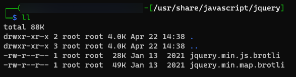 그래서 연결된 파일을 확인하기 위해 /usr/share/javascript/jquery/폴더로 이동합니다.