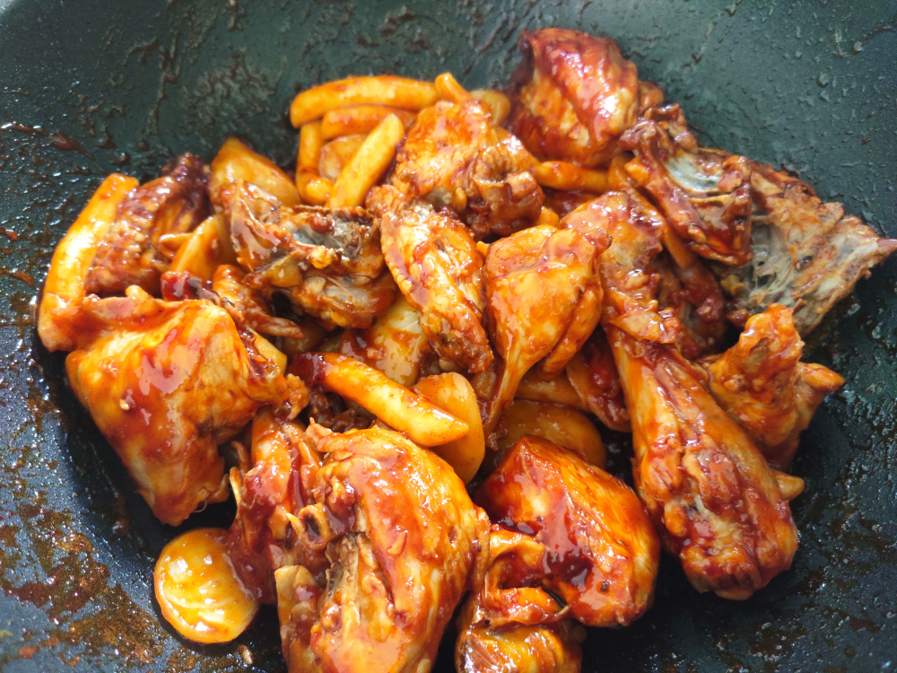 떡볶이 떡을 좋아하시는 분은 이때 다른 냄비에 넣고 끓여주세요. 노릇노릇하게 닭이 다 구워지면 그 위에 떡도 넣어줄 것이기 때문입니다.