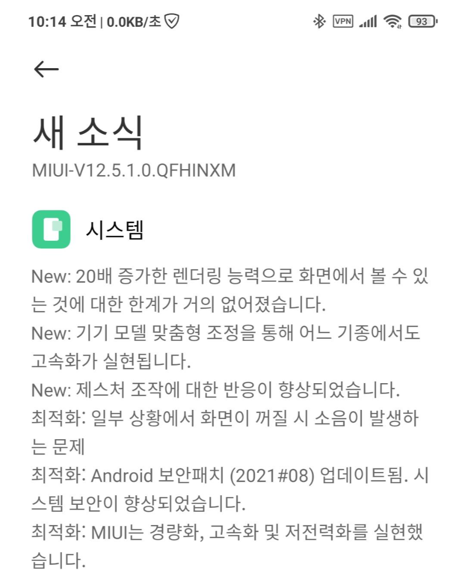 MIUI 12.5.1.0 업데이트 INFO