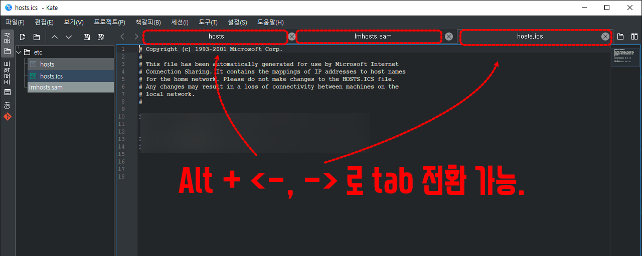 만능 text editor kate - 문서 전환