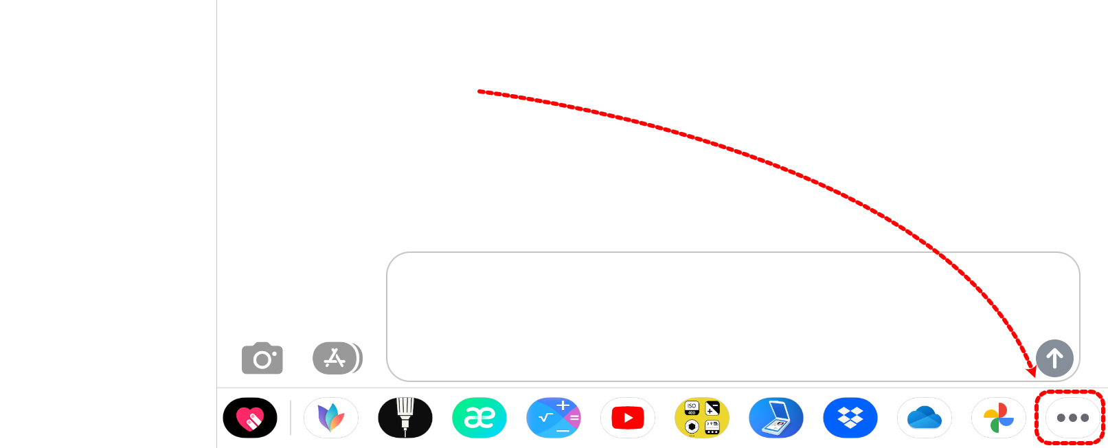 입력창 하단에 다양한 스티커 및 메시지 앱이 보이는데요, 우측 끝에 있는 "더 보기" 버튼을 클릭합니다.