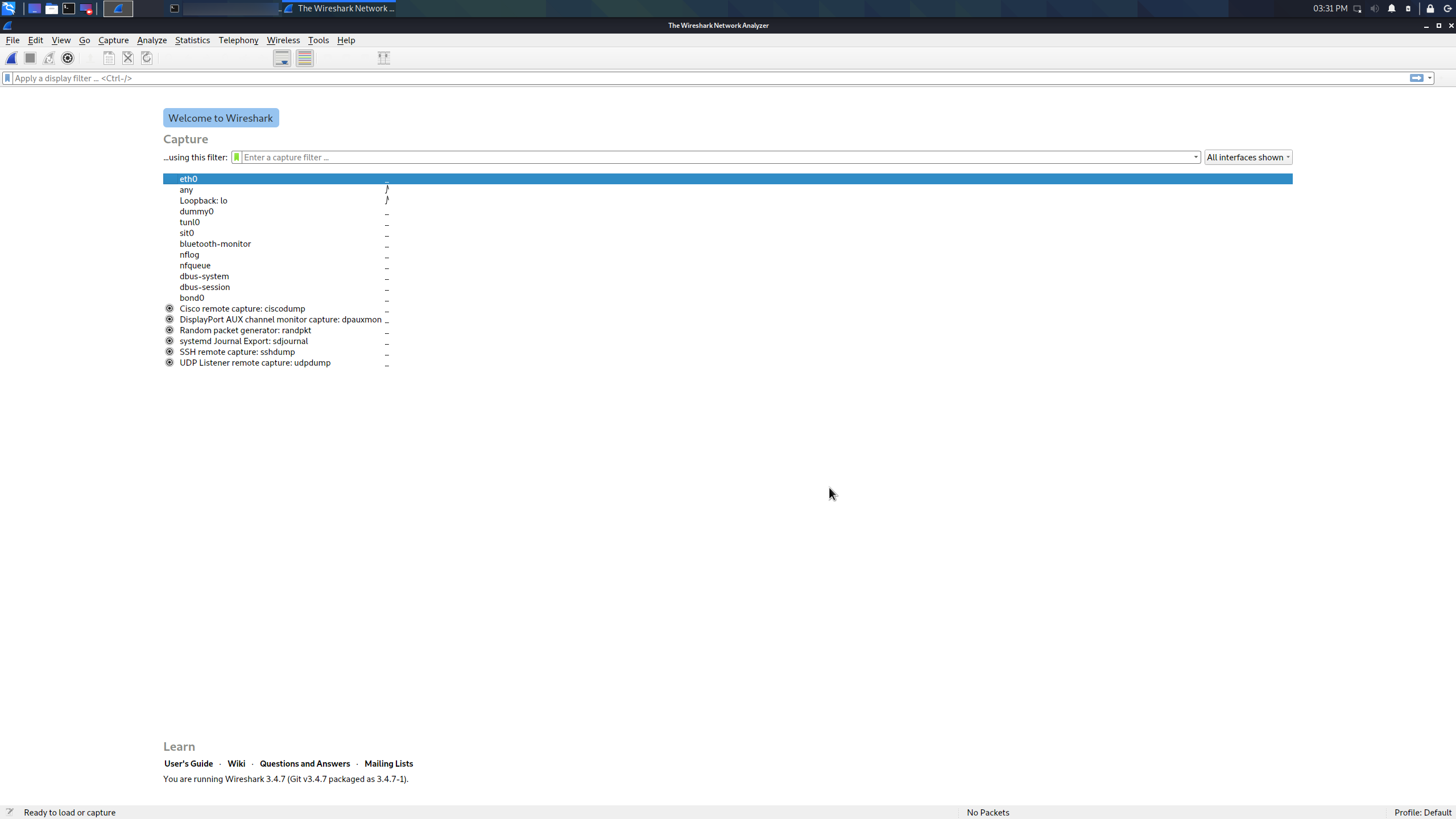 실행된 wireshark