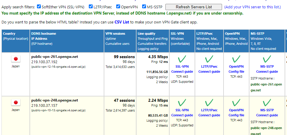 https://www.vpngate.net/en/ 사이트를 방문하여 원하는 국가의 OpenVPN Config file을 다운로드하시면 됩니다.