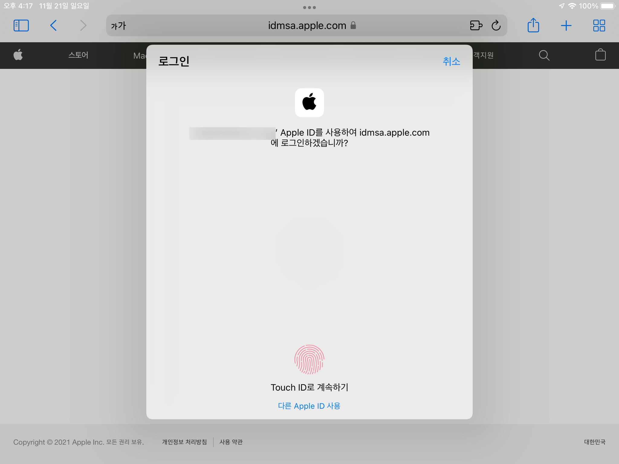 사파리가 자동으로 실행되며 Report a Problem에 로그인을 합니다.