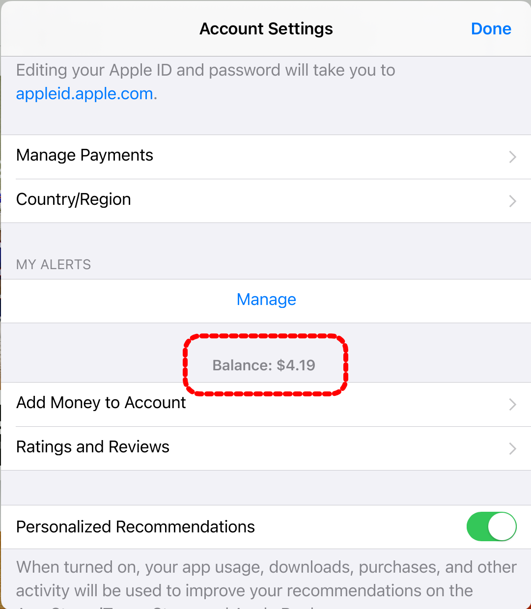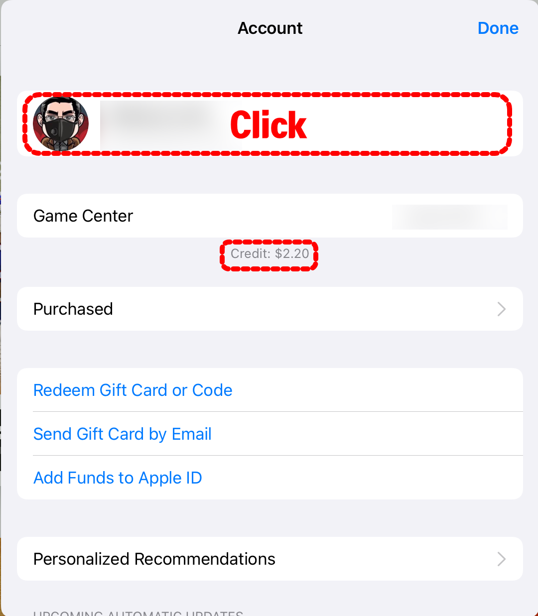 자신의 Apple ID 부분을 클릭하여 Balance 금액을 확인할 수 있는데요, 위 이미지처럼 자신의 ID 부분을 클릭해 주세요.