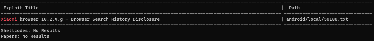 최신 업데이트한 Kali Linux 취약점 db에서 발견된 xiaomi 관련 취약점은 단 한 개로 확인됐습니다.