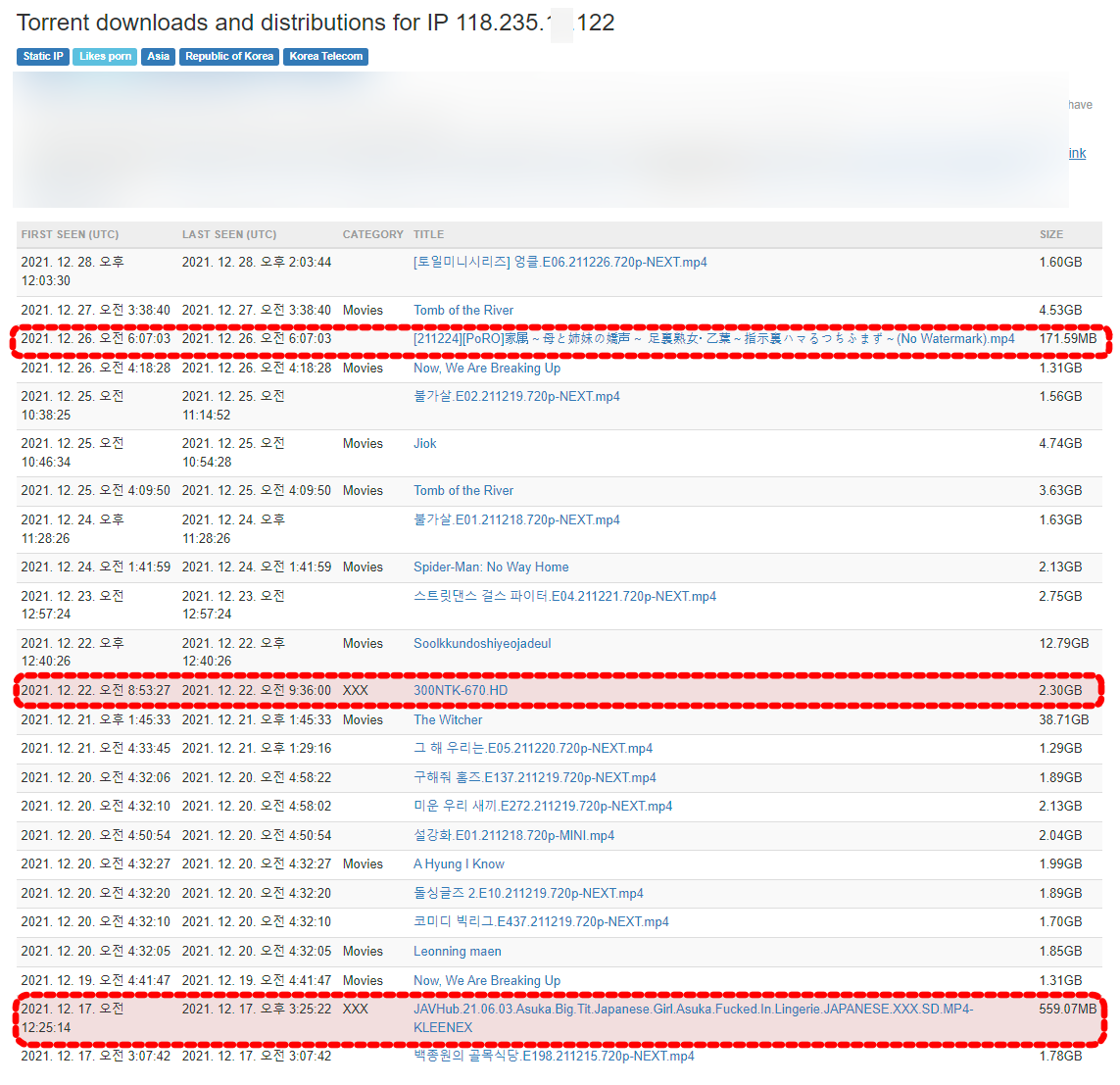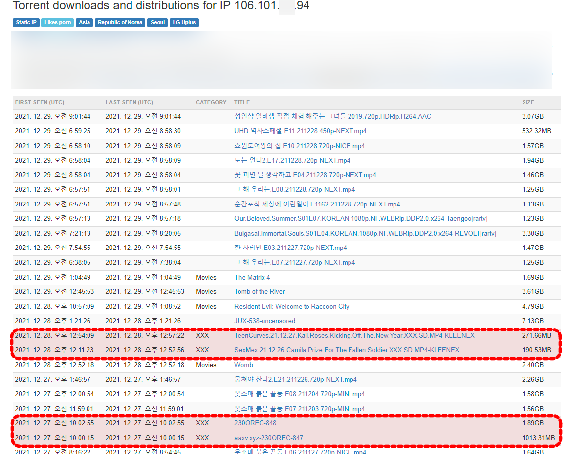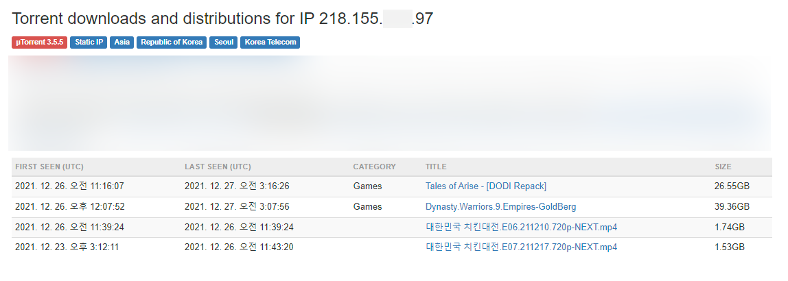 애드센스 클릭 테러 IP의 흥미로운 정보 (토렌트 다운 목록)