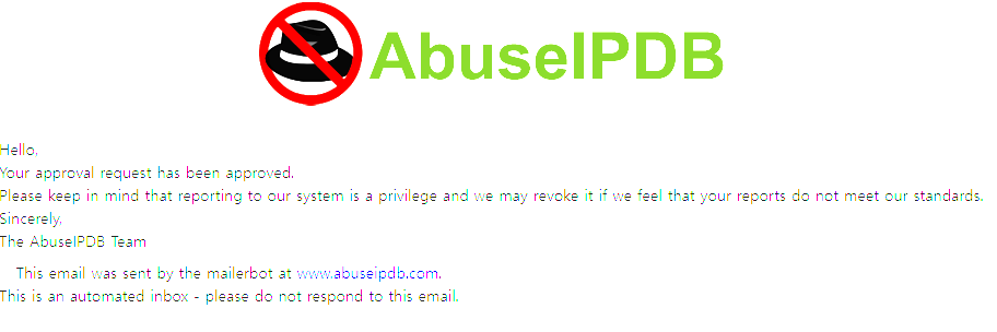 신고할 수 있는 권한(Report privilege)을 신청하고 AbuseIPDB에서 위와 같은 privilege 승인 관련 메일이 오면, 그때부터 REPORT 메뉴를 클릭하여 신고할 수 있습니다.
