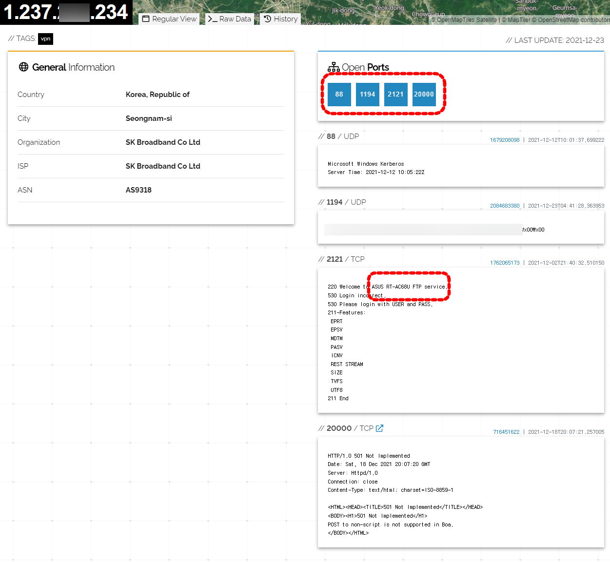 그런 경우 다수의 서비스 ports가 인터넷에 노출되는데요 정보 수집에 능숙한 경우 다양한 OSINT Tools을 통해서 해당 IP 사용자에 대한 추가 정보를 수집할 수 있습니다. (해커 입장에서 이런 네트워크는 잭팟이겠지요)