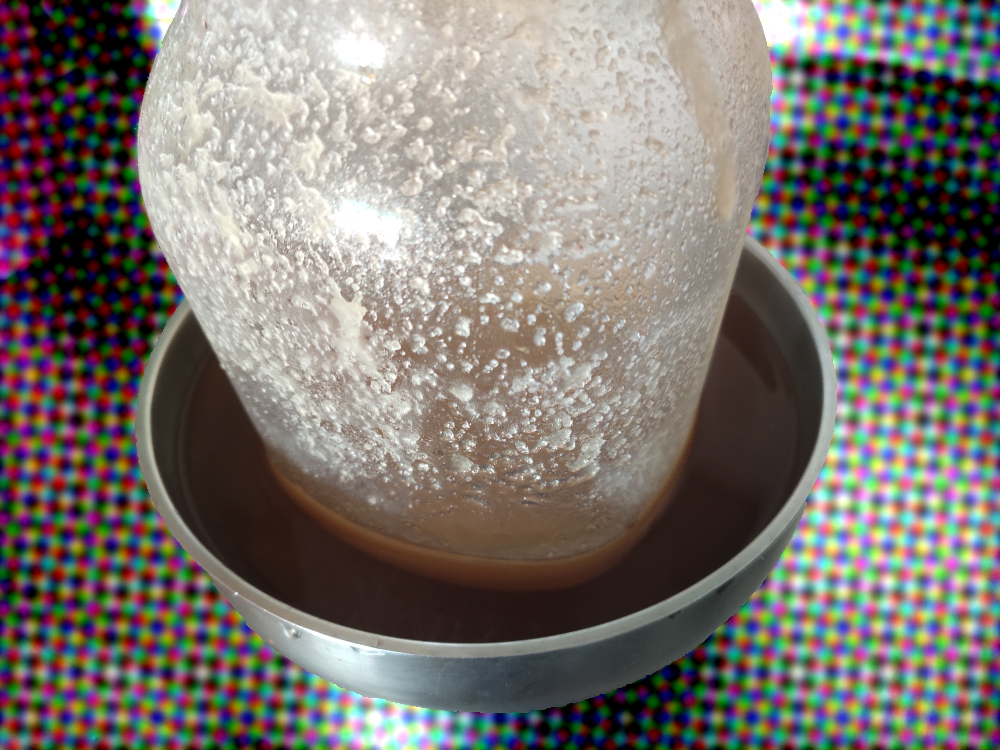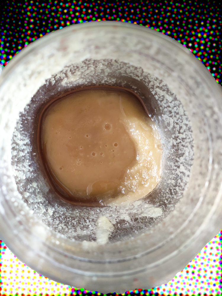 10분 정도 지났습니다. 굳은 꿀 가장자리부터 서서히 액체상태로 돌아오는 것이 보입니다.