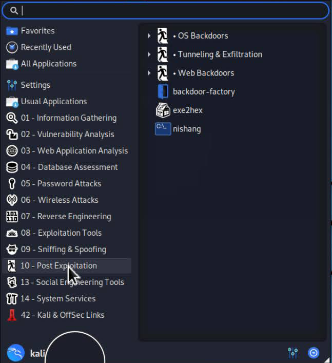 NetHunter kali 계정의 비밀번호는 kali입니다.