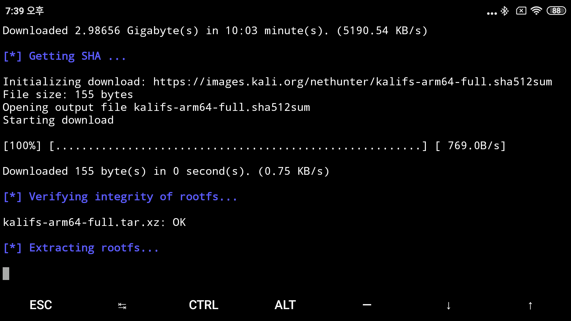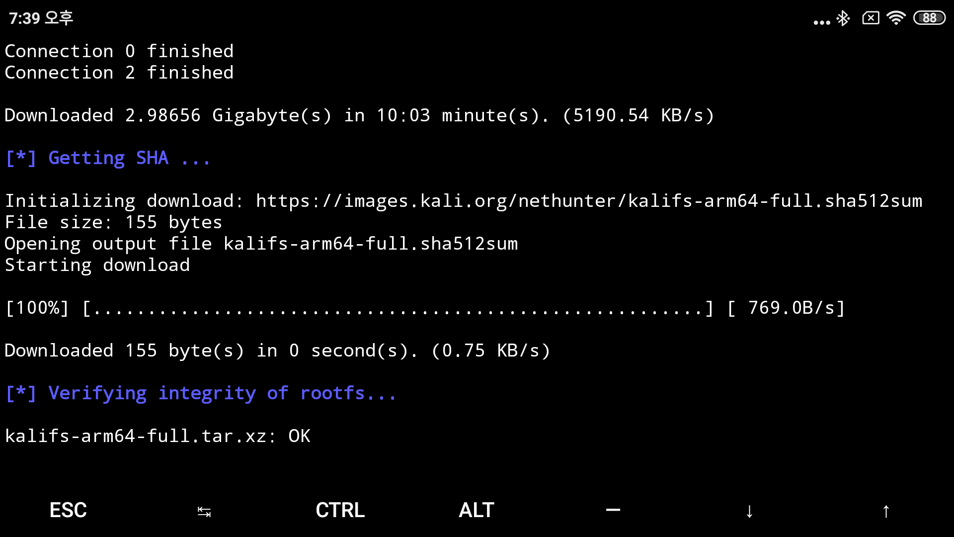 휴대폰에 termux 앱을 설치하고 위에 나오는 순서대로 명령어를 입력하기 만 하면 Kali Linux(NetHunter)가 설치됩니다.