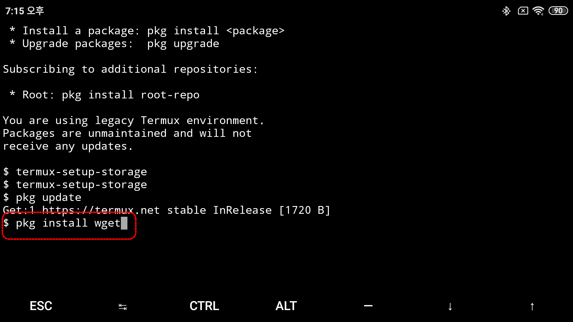 termux에서는 pkg install wget 명령어를 통해서 wget을 설치할 수 있습니다.