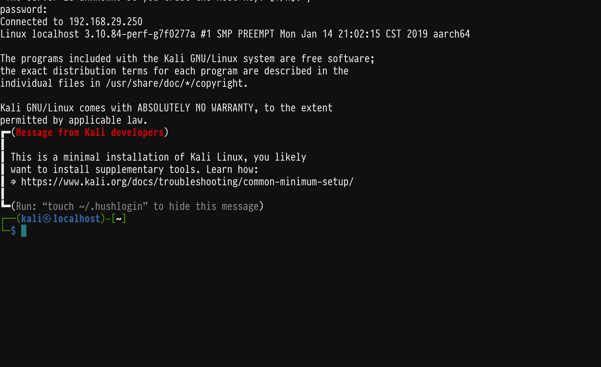 아니면 ssh kali@Nethunter 휴대폰 IP -p 2222 를 통해서 접속하면 됩니다.
