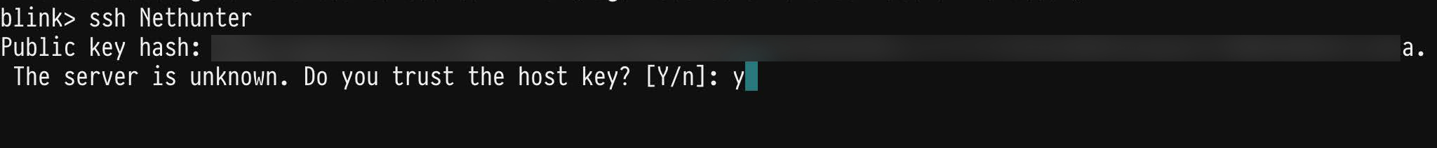 Host Alias로 Nethunter라는 이름으로 등록시켜 두었기 때문에 ssh Nethunter라고 입력하면 됩니다.