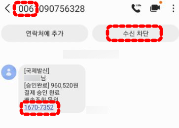 006으로 시작하는 문자가 특히 이런 스미싱에 많이 사용되는 것 같습니다.