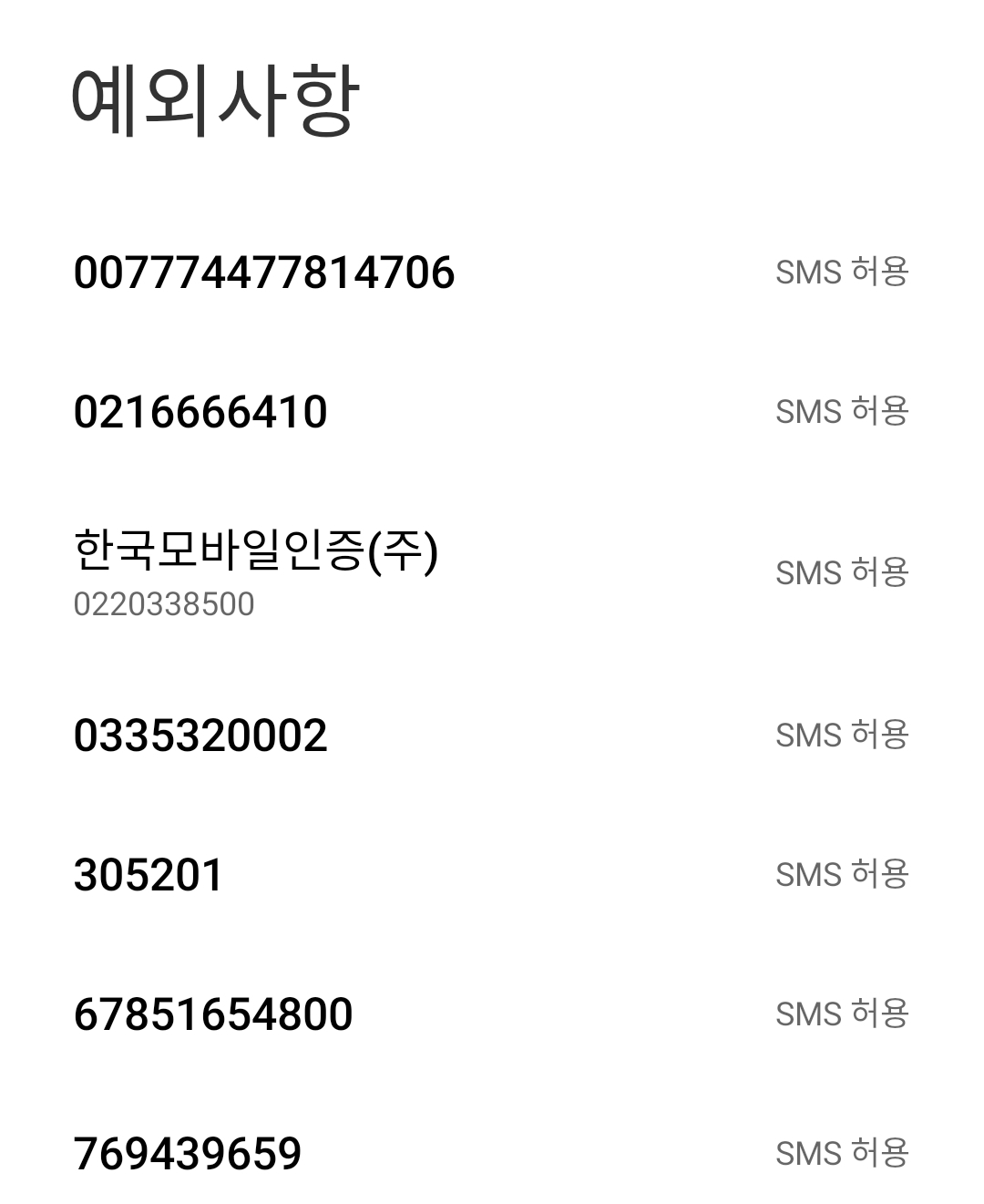 다만, 02, 031, 070 접두어의 경우, 자주 통화하는 거래처의 번호는 "예외 사항"에 미리 등록시켜서 차단되지 않도록 해주셔야 하는 번거로움이 있습니다.
