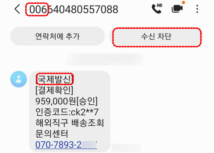 해외 결제 (해외 배송, 해외 결제 승인, 해외 배송) 문자 수신 차단